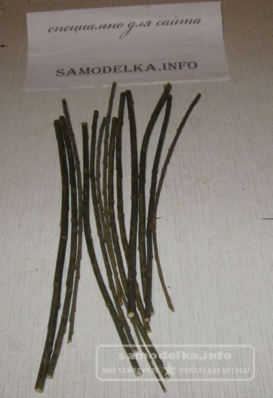 1. Для начала нарежем, не толстый (3-5мм) ивовый, вишневый или черемуховый прут. Его потребуется 15-20 штук кусками 25-30см.