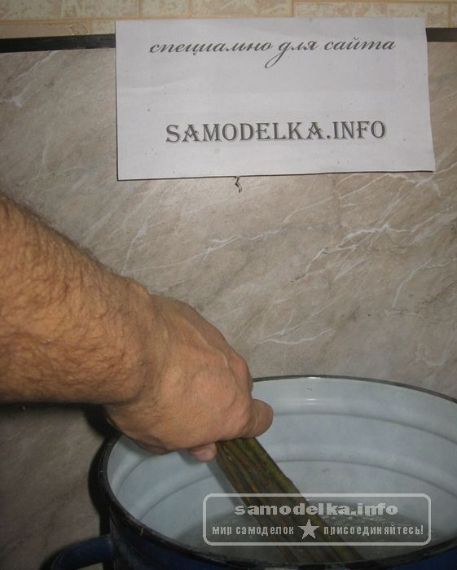 2. На пару часов положим его в кипящую воду, пусть варится. С вареного прута легко будет снять кору, а изделия из вареной лозы долго служат и со временем приобретают красивый коричневатый оттенок.