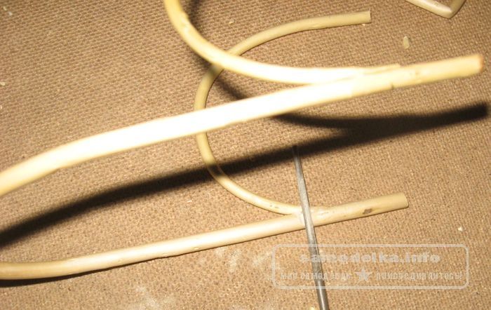 9. Сырье готово можно начинать. Вырежем основу для сидения и в нужном месте подрежем прут так, чтобы его можно было согнуть под прямым углом .