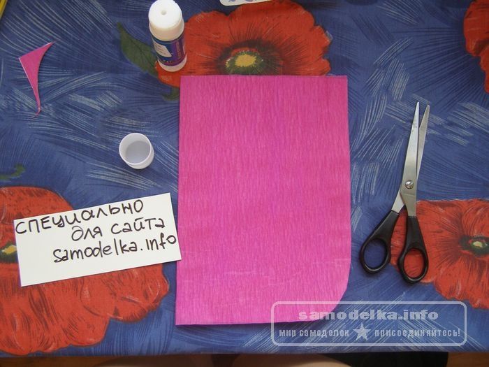 Фиолетовую бумагу (что используется в качестве салфетки) наклеиваем сверху основы, и аккуратно отрезаем уголок.
