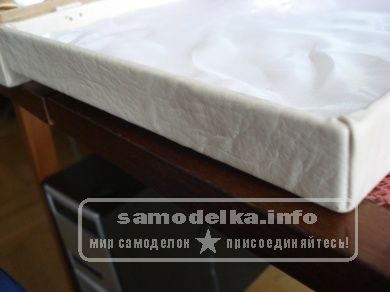 Крышку чемоданчика также обклеиваем обёрнутым в ткань поролоном: