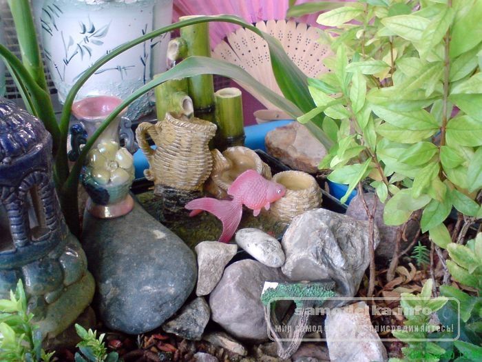 Будущей весной опять переделаю, так как многие растюшки подросли и переедут на дачу. Кстати, я там тоже планирую создать самодельный уголок уже не игрушечного японского сада, а с настоящим прудом и водопадом.